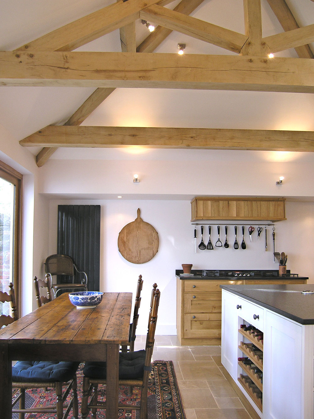 Alterations and extensions to a Grade II 17th Century house to create a new kitchen, conservatory and staircase to the master bedroom. The new design elements are both traditional and contemporary.
