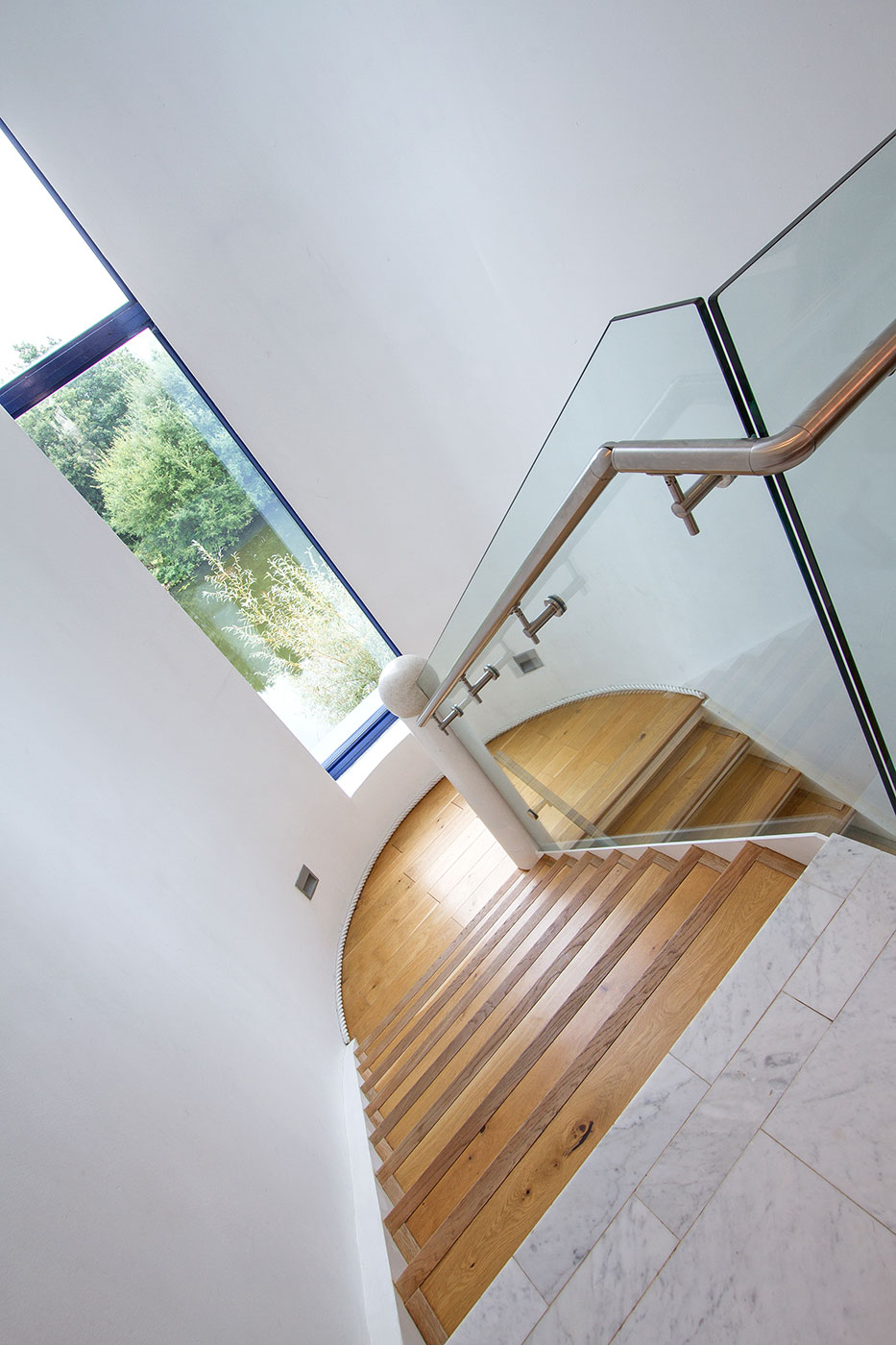 The building is set within a 7 acre site centred around a new man-made lake which houses a ground source heat pump to provide heating and hot water for the dwelling.