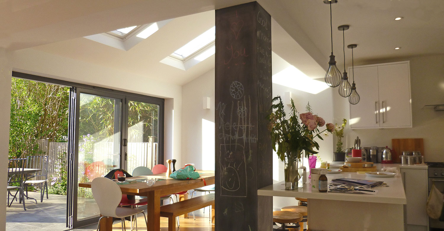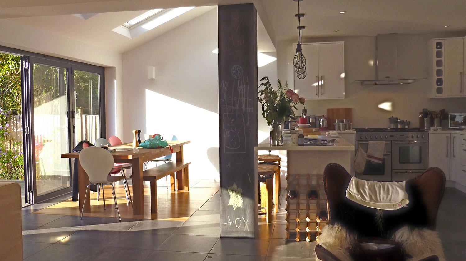 This semi-detached 1920's house was re-modelled and extended to create a large family home. A vast kitchen and family room has been provided with generous openings on to the rear garden along with a new master bedroom and en-suite at first floor level.